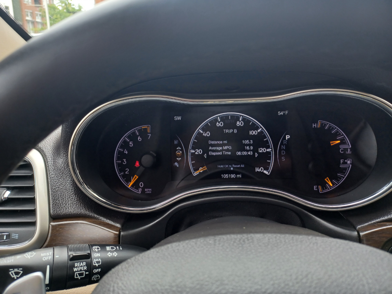 This red 2014 Jeep Grand Cherokee Limited is in great shape with 105K miles. Equipped with a 3.6L V6, automatic transmission, and 4WD, it’s ready for city driving or mountain trips. Tan leather interior, sunroof, and all the upscale features you’d expect from a Limited trim. Strong, reliable, and stylish — a great SUV at a fair price.